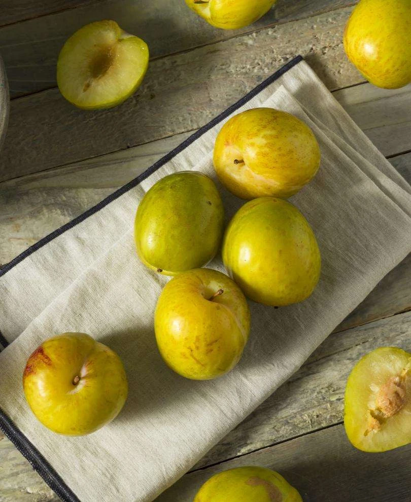 Enjoy explosive, sweet-as-honey flavor! This green fruit with a red blush hangs on the tree and can be eaten for four to six weeks as it keeps getting sweeter. It extends the stone fruit season and can be harvested into October. when it will still have a distinctive crunch.